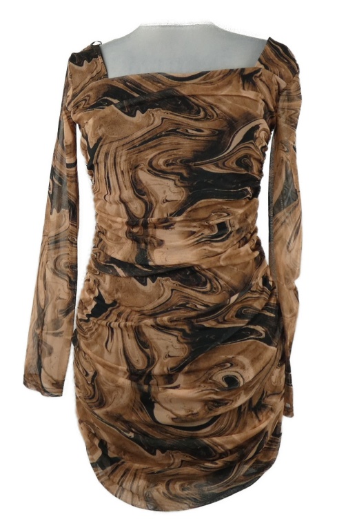 Dámske skořicovo-čierne vzorované tylové řasené šaty Select