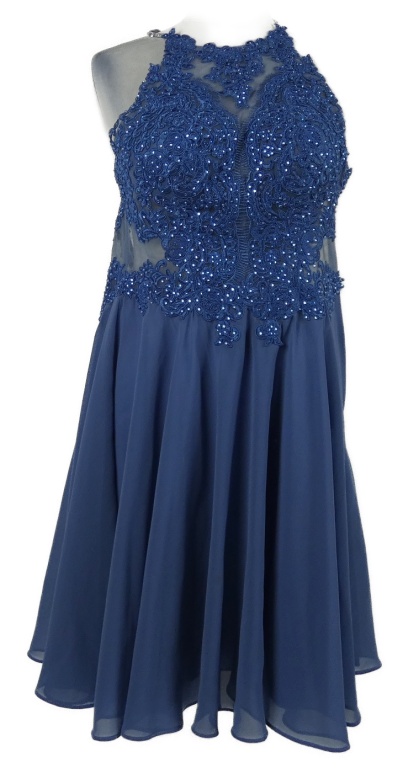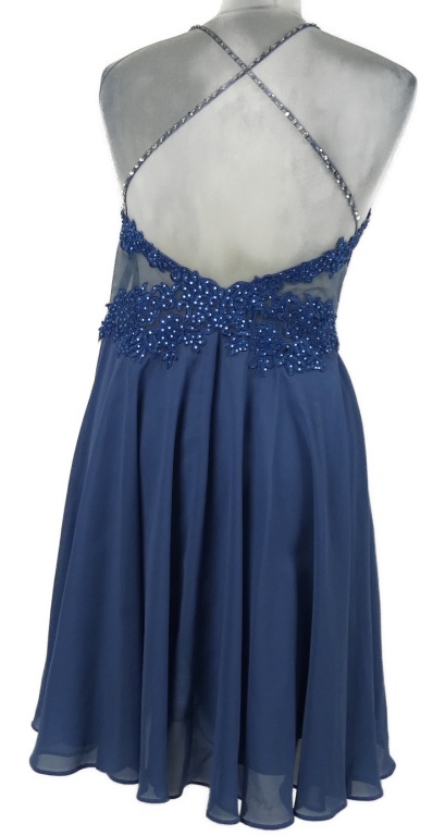 Dámske modré šifonovo/krajkové plesové šaty s kamienkami