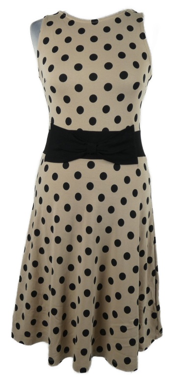 Dámske béžovo-čierne bodkované šaty s mašlou Bodyflirt