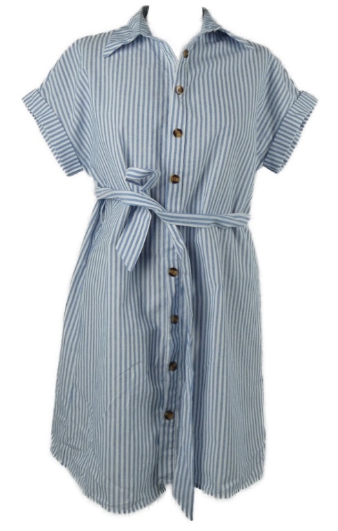 Dámske světlemodro-biele pruhované košeľové šaty s opaskom Shein