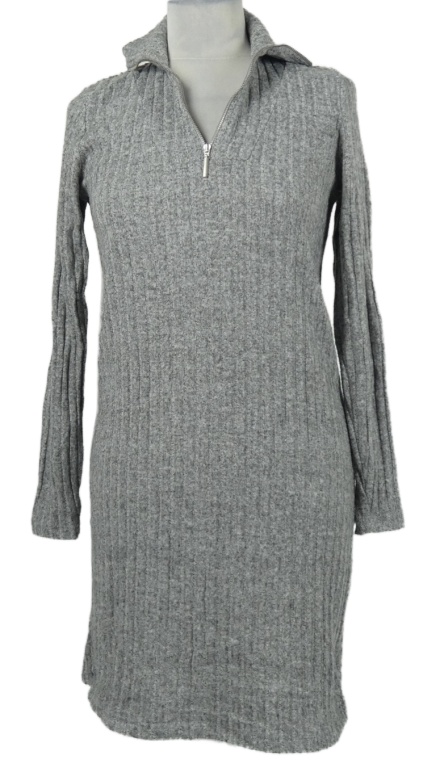Dámske sivé rebrované úpletové šaty s golierikom George