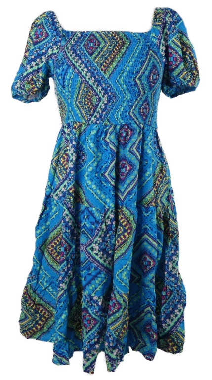 Dámske modro-farebné vzorované žabičkové šaty Mitzy