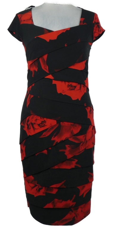 Dámske čierno-červené vrstvené púzdrové šaty s kvetmi Roman