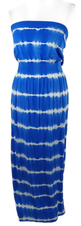 Dámské safírovo-bílé batikované dlouhé šaty bez ramínek