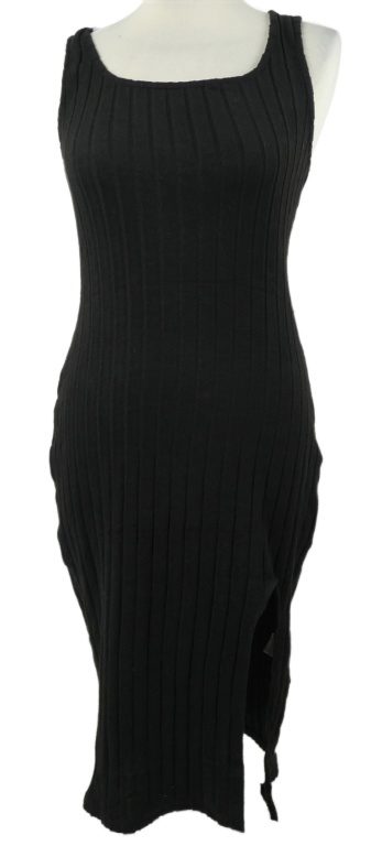 Dámske čierne žebroané úpletové šaty Shein