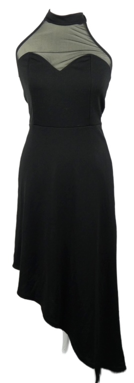Dámske čierne koktejlové asymetrické šaty s tylovým výstřihem Boohoo