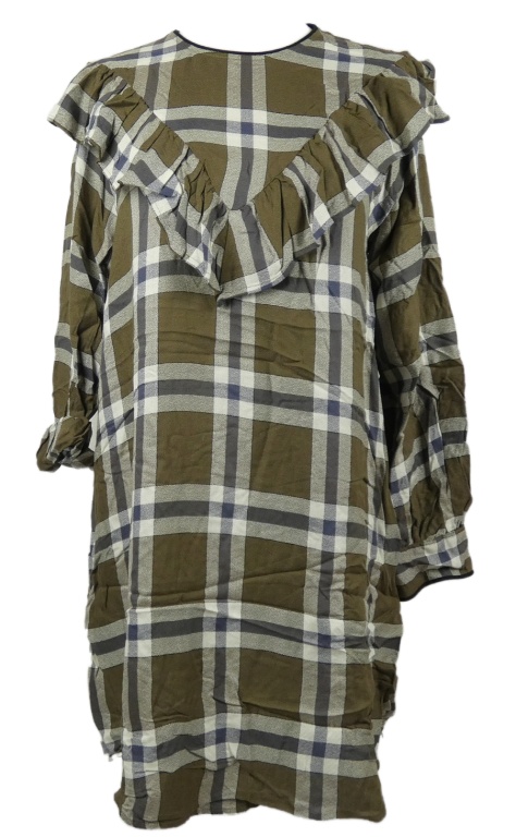 Nové - Dámske kaki-tmavomodro-biele kockované šaty s volánikom Next