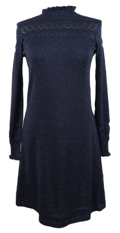 Dámske tmavomodré trblietavé svetrové šaty Warehouse