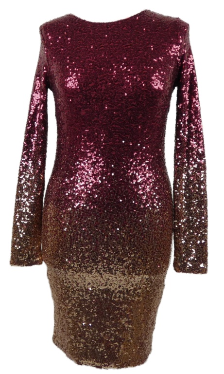 Dámske vínovo-zlaté flitrové šaty
