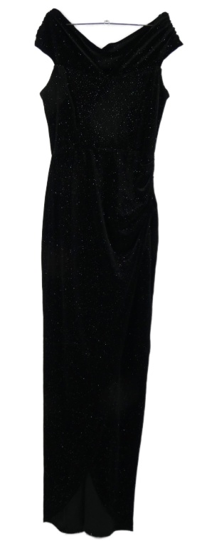 Dámske čierne trblietavé zamatové dlhé šaty Quiz