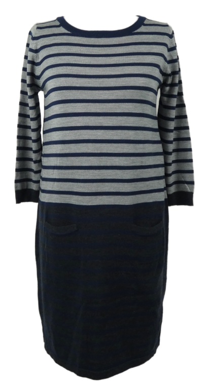Dámske sivo-tmavomodré pruhované svetrové vlnené šaty Jigsaw