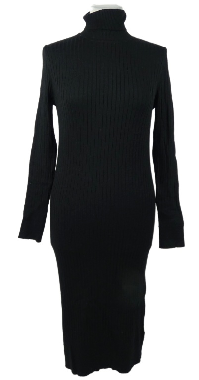 Dámske čierne rebrované pletené šaty s rolákom Next