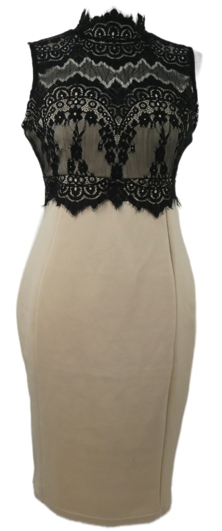 Dámske čierno-smotanové púzdrové šaty s krajkovým živůtkem