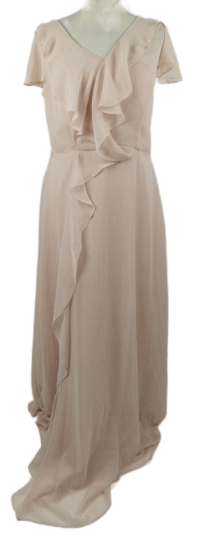 Dámske svetloružové šifónové žabičkové dlhé šaty s volánikmi Showcase