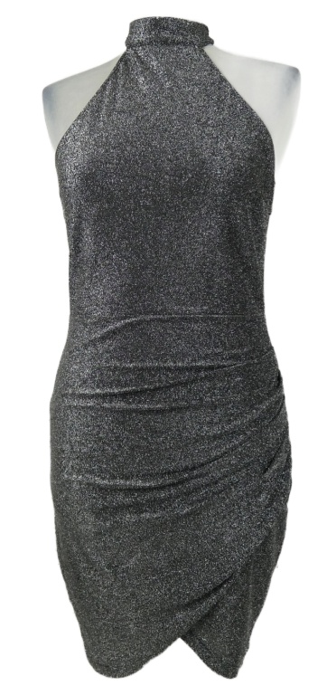 Dámké čierno-strieborné elastické šaty so stojačikom Pink Boutique