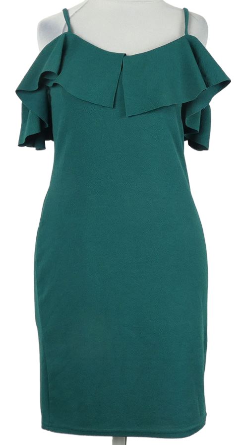 Dámske tmavozelené šaty s volnými rameny a volánikom MissGuided