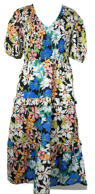 Dámske farebné kvetované žabičkové midi šaty