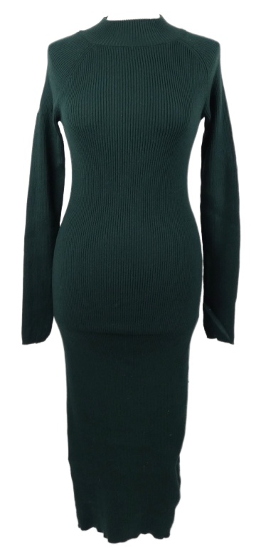 Dámske tmavozelené rebrované pletené midi šaty so stojačikom Reserved