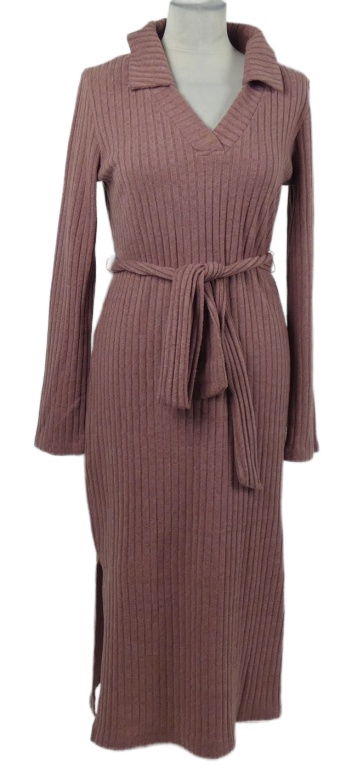 Dámske staroružové rebrované úpletové midi šaty s opaskom Stella Morgan