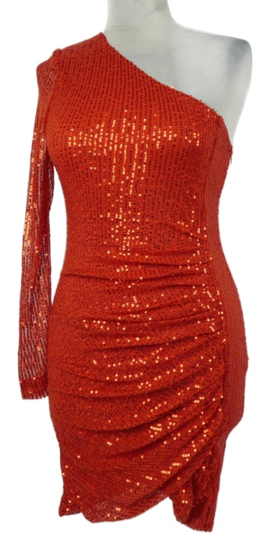 Dámské červené flitrové asymetrické minišaty Mocci