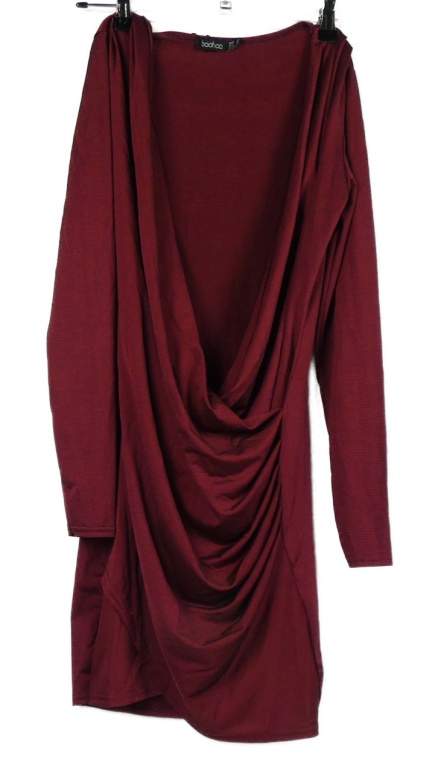 Dámske karmínové šaty s řasením Boohoo