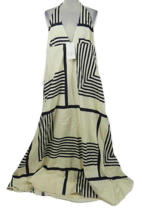 Nové - Dámske béžovo-tmavomodré pruhované plátenné dlhé šaty Zara