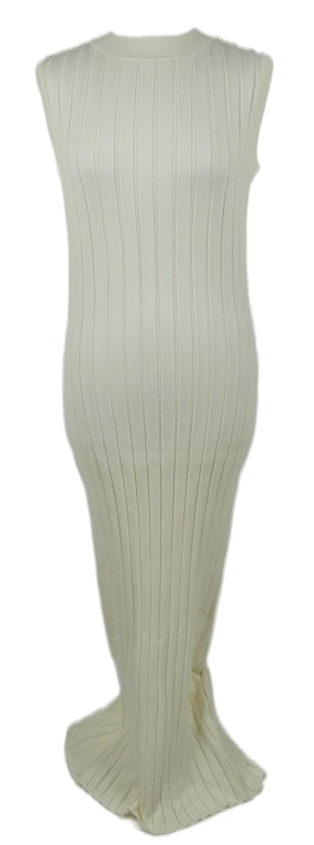 Dámske smotanové rebrované pletené dlhé šaty Lounge