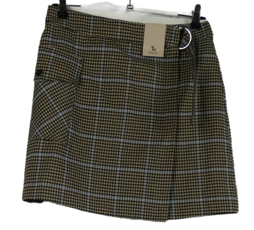 Nové - Dámska béžovo-modrá kockovaná sukňa s vreckom a opaskom TU
