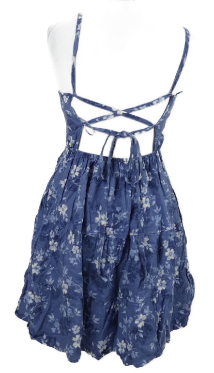 Dámske modré kvietkovane ľanové šaty so šnurovaním Hollister
