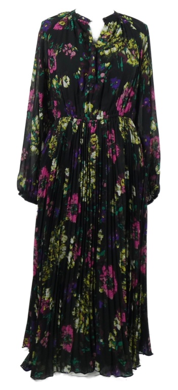 Dámske čierne kvetované šifónové plisované dlhé šaty TU