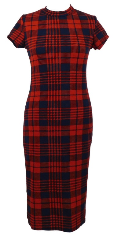 Dámske červeno-tmavomodré kockované dlhé šaty