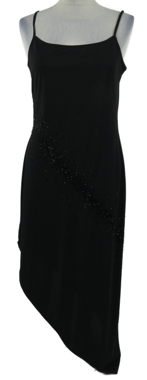 Dámske čierne asymetrické spoločenské šaty s korálkami