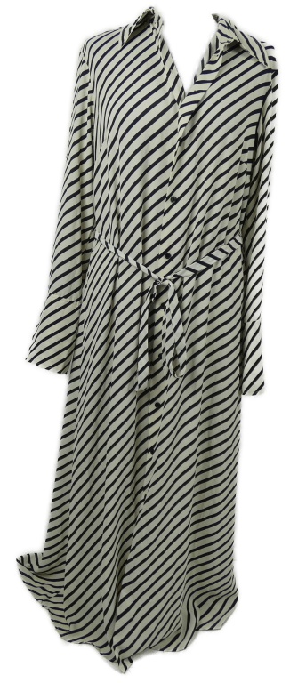 Dámske tmavomodro-biele pruhovanané košeľové šaty s opaskom H&M