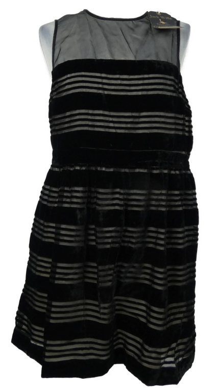 Nové - Dámske čierne sametovo-organzové pruhované šaty Jack Wills