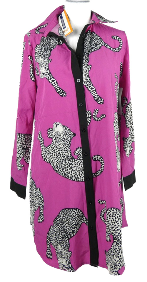 Nové - Dámske fuchsiové košeľové šaty s tigrami
