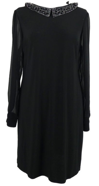 Dámske čierne šaty s šifónovymi rukávy a korálkovým golierikom Wallis