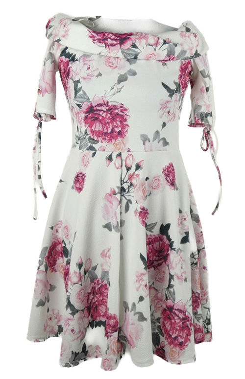 Dámske biele šaty s kvetmi a stahovacími rukávy Select