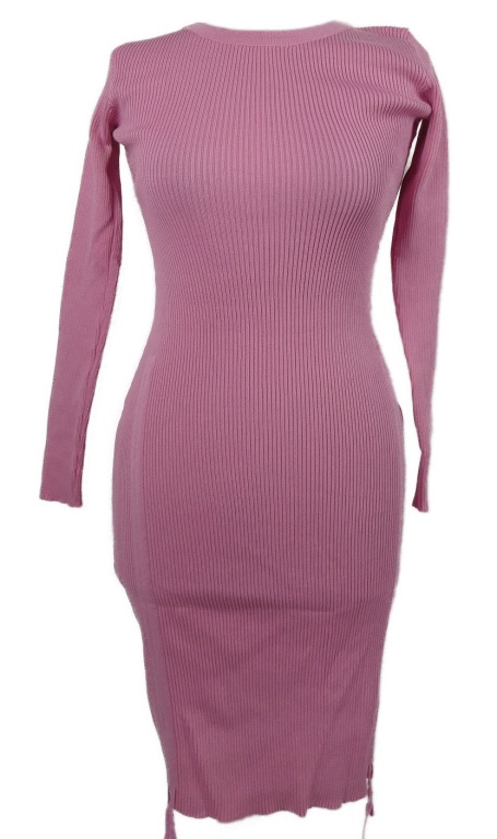 Dámske ružové rebrované pletené šaty