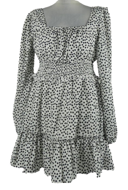 Dámske bielo-čierne kvietkovane šaty s volánikmi MissGuided
