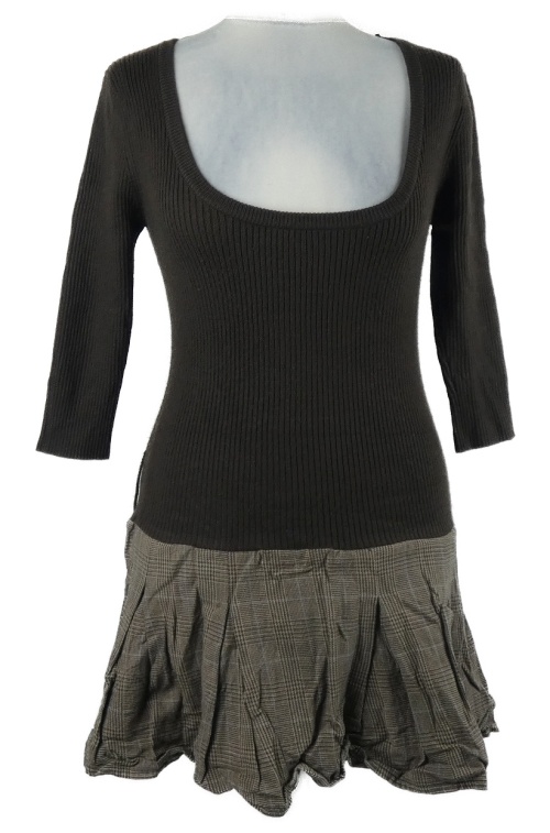 Dámske hnedo-kockované svetrové šaty BAY