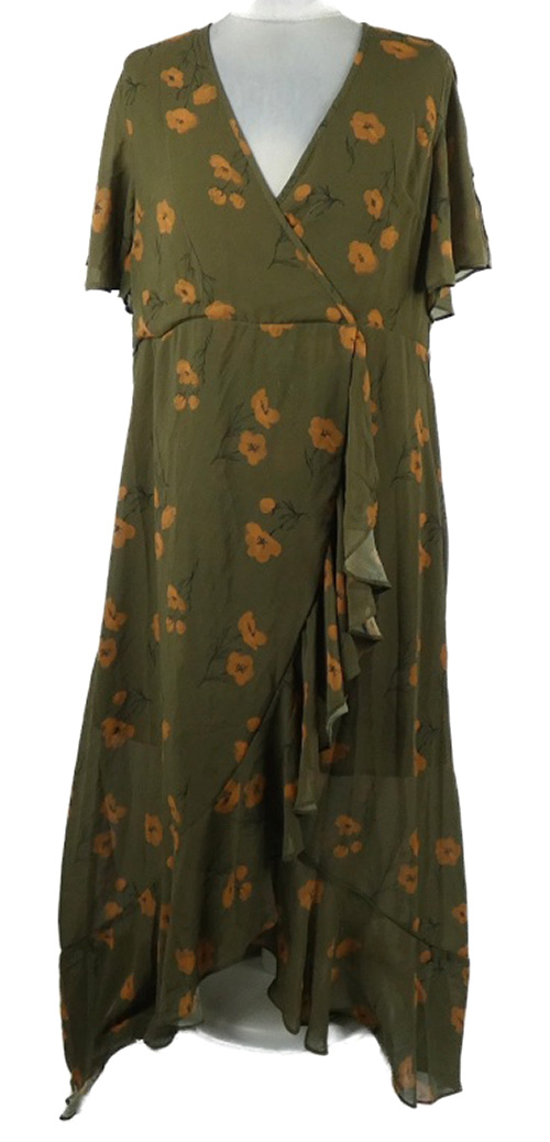 Dámske khaki kvetované šifónové mullet šaty Shein
