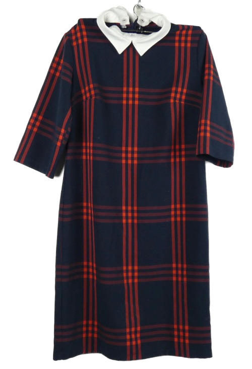 Dámske tmavomodro-červené kockované šaty s golierikom