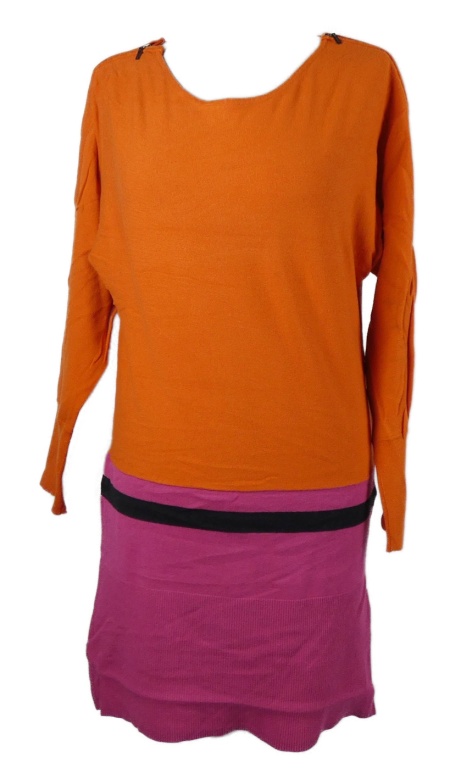 Dámske oranžovo-tmavoružové svetrové šaty s pruhom Comma