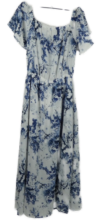 Dámske bielo-modré kvietkovane midi šaty s lodičkovým výstřihem Osmose