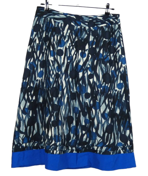 Dámska tmavomodro-biela vzorovaná hodvábneá midi sukňa EAST