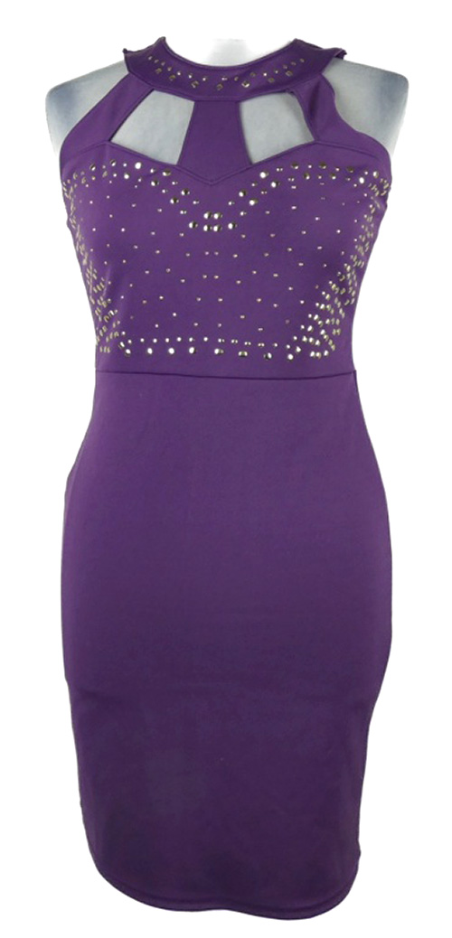 Dámske fialové púzdrové šaty s cvokmi Be Beau