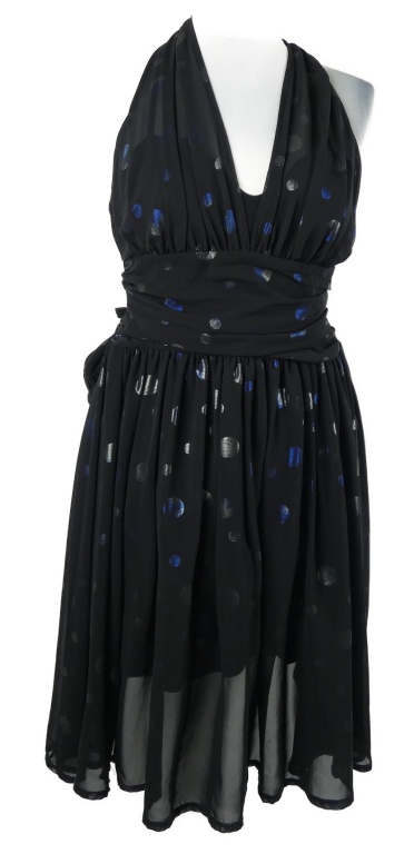 Dámske čierne bodkované šifónové šaty so zavazováním za krkem KDK
