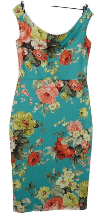 Dámske tyrkysové kvetované púzdrové šaty