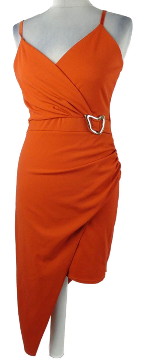 Nové - Dámske tehlově červené asymetrické šaty so sponou AX