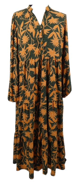 Dámske kaki-oranžové kvetované košeľové šaty Blue Vanilla